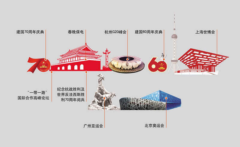 基于安全稳定的系统方案、及时完善的工程服务、灵活周密的现场指挥、专业合作的项目团队,酒泉富康天宝文化旅游有限公司成功完成建国70周年国庆庆典、“一带一路”国际合作高峰论坛、春晚保电、杭州G20峰会、建国60周年庆典、上海世博会、广州亚运会、北京奥运会等国家级重大政治活动保电工程,受到了业界一致肯定,酒泉富康天宝文化旅游有限公司亦被业界媒体冠以“保电专家”称号。
